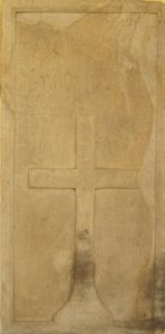Náhrobník byl vytesán z pískovce, je vysoký 16 cm, dlouhý 188 cm a široký 94 cm. Artefakt je v poměrně dobrém stavu: není příliš sešlapán či poškozen vrstvou, která jej kryla. Na náhrobníku čteme: „1682 dio 10 / Ssa w uro pamieti / tu lezi mykulass / Busscik spoluOby / watel Klobaucih / deg mu pan Buh / ziwot wiecny“.