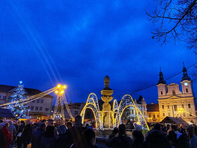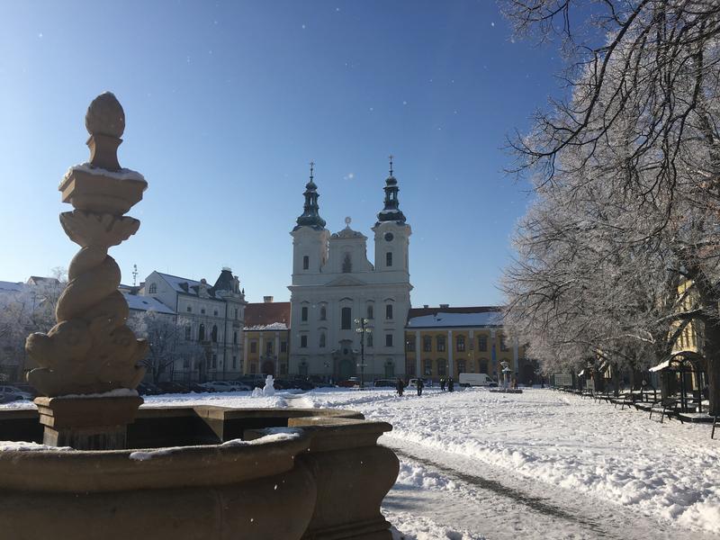 Patrně neslavnější barokní kašna města. Pochází z 1. poloviny 18. století, autor Václav Render byl významný olomoucký sochař. Kašna je ozdobena propletenými těly delfínů a v horní části je završena piniovou šiškou. Na náměstí najdete jen kopii. Originál stojí od roku 1979 na nádvoří Galerie Slováckého muzea.