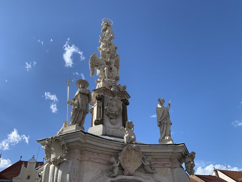 Mariánský morový sloup byl vytvořen v letech 1718 - 1721 brněnským sochařem Antonínem Rigou z cetechovického mramoru na místě, kde původně stávala městská kašna. Ta byla posunuta o několik metrů západním směrem a dotváří barokní charakter náměstí.