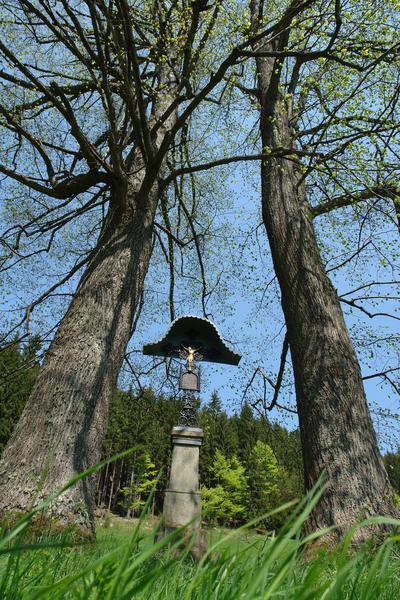 Na kraji Kubání, vedlejšího údolí podťatého, stojí kříž. Spodní část je kamenná, kříž s tabulkou litinový. Většina litinových křížů v Karlovicích má jednoduché kamenné podstavce, podstavec tohoto kříže je však ukázkou pěkné kamenické práce.