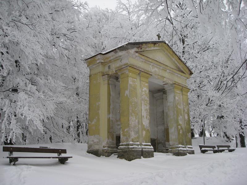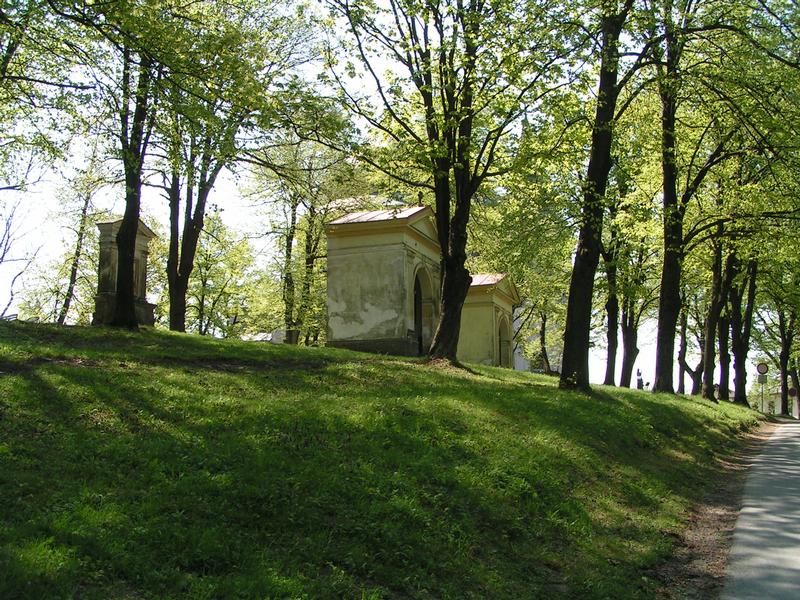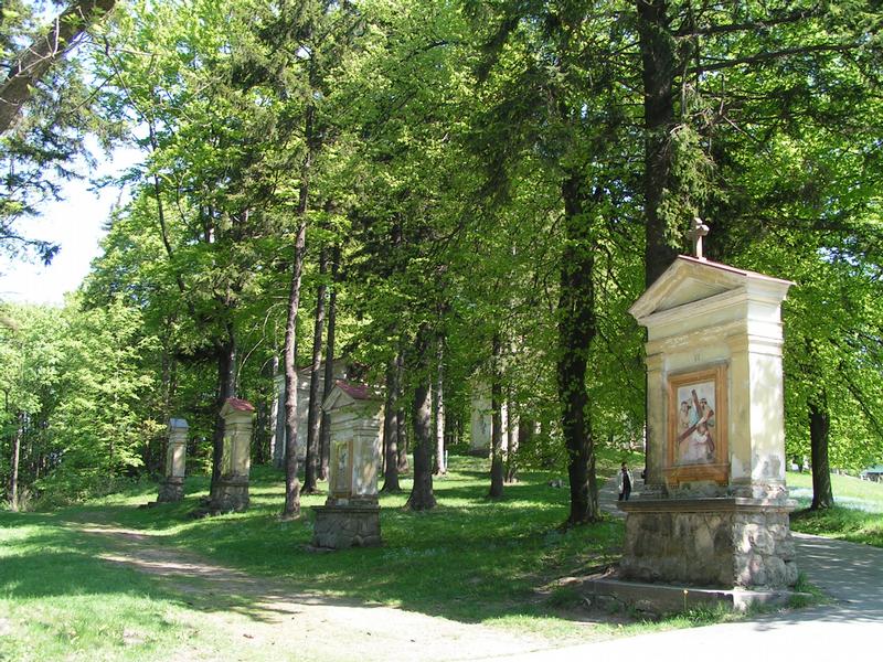 P. Cibulka uznal nezbytnost venkovní křížové cesty, v r. 1900 posvěcen základní kámen. Stavbu prováděl stavitel Otto Zeman. Jednoduché kaple 1. a 2. zastavení situovány vlevo od Sarkandrovy kaple směrem k rozhledně, následujících 8 tvoří otevřené kamenné podstavce ukončené křížem, na nichž jsou osazeny obrazové reliéfy. Další 3 tvoří kaple různého slohu, poslední rotunda "Kladení do hrobu" je zároveň i posledním zastavením Jurkovičovy křížové cesty. Plastika je od olomouckého sochaře R. Doležela, pašijové obrazy zhotovil bystřický malíř Žůrek. Svěcení křížové cesty v září 1902.