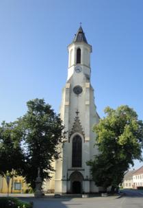 Stavba byla budovaná v 70. let 19. století v novogotickém stylu. Její projektantem byl arcibiskupstvím v Olomouci určen ing. Gustav Meretta, ten vytvořil jednolodní kostel s kněžištěm, sakristií a věží. Kněžiště a sakristie jsou umístěny za loď a postupně snižují výšku stavby. Půdorys je u lodi obdélníkový v závěru pětiboký a trojúhelníkový u kněžiště a potažmo u sakristie, střecha je sedlová v závěru zvalbená. Věž je předsunuta před vchod, je štíhlá čtyřpatrová u zvoniště přechází do pravidelného osmistěnu se zakončením v jehlancovité osmiboké střeše s jednoramenným křížem. Věž je podepřena opěrnými pilířky, tak jako celá stavba, v průčelí s portálem vysokým pravoúhlým oknem se záklenkem v lomeným oblokem, tympanonu v podobě fiály nad a kruhovým záklenkem okna. Kruhové okno má v okruží trojlist, před nějž je předsunut erb (asi kardinála Fürstenberga). Fiála má po stranách plaménky a uvnitř okruží ve tvaru trojlistu. Okruží okna je pětilist. Po stranách lodi jsou tři osy vysokých gotických oken s okružím, u prvního a třetího okna trojlist prostřední má čtyřlist, třetí okno nedosahuje výšky předchozích a je zhruba v jedné čtvrtině od shora ukončeno. Stejné tvary a střídání pokračuje i u kněžiště a sakristie, kde je v každé straně jedna osa okna.