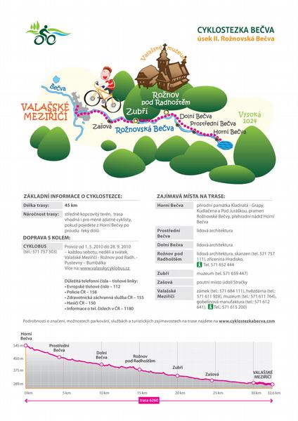 STEZKA PRO CYKLISTY, in-line bruslaře, turisty i běžkaře. Stezka nejen pro cyklisty. Ať už si k návštěvě cyklostezky Bečva vyberete kteroukoli roční dobu, můžete se těšit na příjemný zážitek. Od pramenů Rožnovské a Vsetínské Bečvy až po soutok s Moravou máte na 141 km možnost poznávat pamětihodnosti, přírodní krásy, lidové tradice i místní speciality Valašska, Moravské brány a Hané. Bezpečné a komfortní stezky sledující tok Bečvy, jsou jako stvořené pro cyklisty a in-line bruslaře každého věku, ale využít je mohou i vozíčkáři, turisté a v zimě běžkaři.