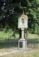 Soška je kopií barokní sošky, která byla ukradena. Originál byl nalezen a uložen v Dřevohosticích na faře. Přední strana je prosklená a uvnitř je umístěna soška P. Marie Hostýnské z pryskyřice. Na zadní straně je napsáno věnování.
