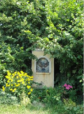 Na okraji obce po pravé straně cesty na Dřevohostice najdeme barokní zděnou stavbu půlkruhového půdorysu. V čelní straně stavby se nachází obraz Svaté Trojice.