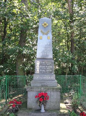Za obcí, v kopci u lesa, se nachází na třech kvádrech z umělého kamene usazen žulový podstavec o třech částech zakončený obeliskem. V obelisku umístěny bronzové předměty. V podstavci, který text přerušuje jsou uvedena vedle tří fotografií pod sebou jména a data narození obětí fašismu.