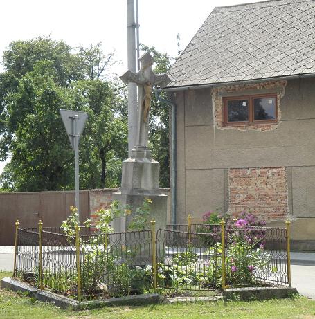 Kříž je usazený na podstavci o čtyřech stupních. Uprostřed soklu je vyryt text.
