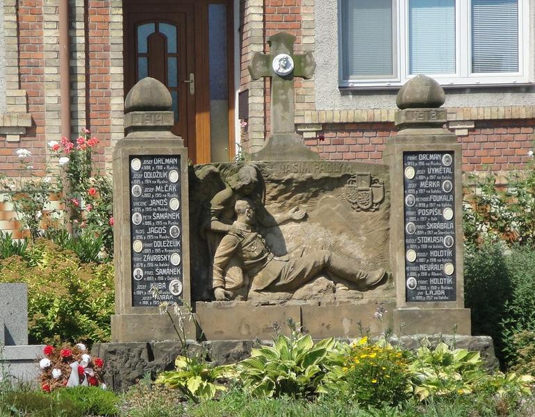 Památník se skládá z desky s reliéfem anděla a raněného vojáka zakončené křížem a dvou sloupců po stranách desky se jmény a fotografiemi padlých.