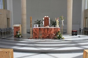 Stavba kostela začala v roce 2002, autorem je slovinský architekt Ivo Goropevšek. Nosnou část hlavní lodi tvoří 12 sloupů, které symbolizují 12 apoštolů. Na to navazuje střecha ve tvaru čtvrtkruhového oblouku připomínající baldachýn a symbolizující lehkost - vznášení. Ze strany od Památníku Velké Moravy se nachází vchod a čelní strana kostela. Tu tvoří dvě věže mírně skloněné směrem k vlastní stavbě, představující 2 slovanské věrozvěsty sv. Cyrila a Metoděje. Věže jsou uprostřed propojeny křížem, jehož tvar vychází z nálezu při archeologickém průzkumu této lokality. Hlavní loď má navrženo venkovní opláštění ze skla. Sklo symbolizuje pronikání paprsků a otevřenost církve. V suterénu vzniklém pod hlavní lodí se nachází sál pro společenské využití, různé kulturní i vzdělávací akce ve městě. V přední části je liturgický prostor s oltářem a svatostánkem, který je navržen jako společný pro kostel a zimní kapli, která je umístěna za liturgickým prostorem z východní strany a je zasvěcena Panně Marii. Materiály, které byly při stavbě použity - tradiční pohledový železobeton, zděné konstrukce a dřevěný či kamenný obklad.