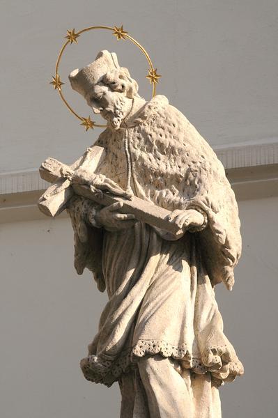 Barokní socha svatého Jana Nepomuckého z roku 1713 se nachází u františkánského kostela Zvěstování Panny Marie, kam byla přestěhována od starého mostu přes řeku Moravu.