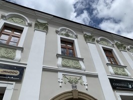Dům U Labutě a lékárna U Zlaté Koruny jsou jediné budovy ve městě, na kterých se zachovala domovní znamení. Ve sklepě Domu U Labutě se dochoval gotický portál a v přízemí barokní klenby z konce 17. století. Dům, ve kterém dnes sídlí Pekárna U Jahodů, je zapsán do státního seznamu památek.