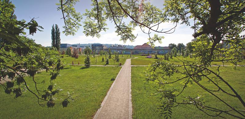 Projekt obnovy stávající opuštěné a bývalé cvičné střelnice s masivní střeleckou zdí, řídící věží, zákopy a objekty učeben byl součástí integrovaného plánu rozvoje města a spolufinancován z operačního programu Evropské unie. Autorem ideového návrhu přemeny objektu byl architekt pro zahradní a krajinářskou tvorbu Ing. Martin König. Na ploše 1,5 hektaru nové zelené plochy bylo vysazeno 145 stromů, 134 keřů a 1425 trvalek. Chodníky s lavečkami lemují parkovní dekorativní světla.