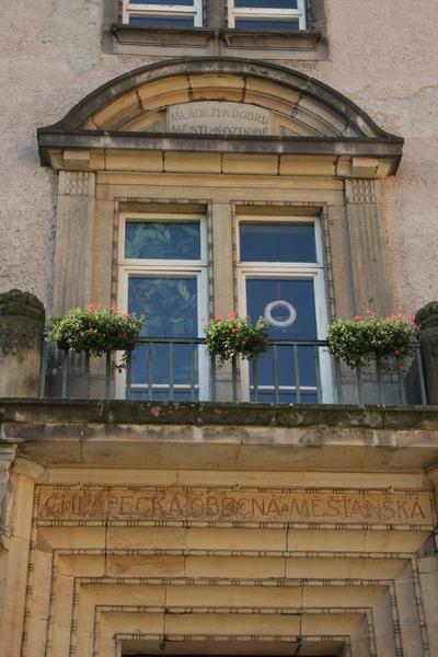 Rozměrná budova českých obecných a měšťanských škol vznikla na nově se formujícím Komenského náměstí v roce 1913 dle projektu architekta Ladislava Skřivánka.