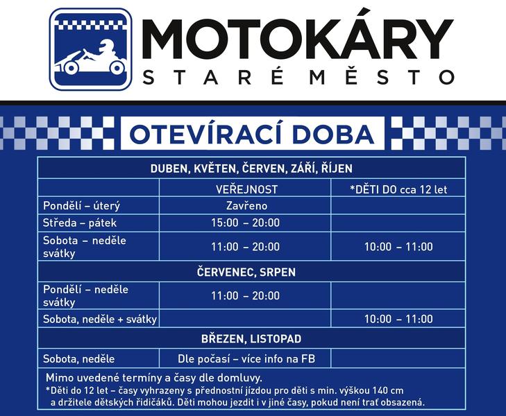Motokárová dráha ve Starém Městě nabízí jízdy pro jednotlivce i skupiny. Možnost uspořádat firemní i soukromé akce. Děti zde mohou absolvovat školu jízd a získat svůj dětský řidičák. Nabízíme motokáru upravenou pro jízdu handicapovaných jezdců.