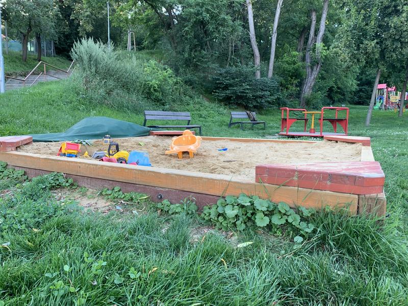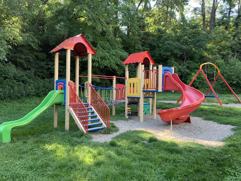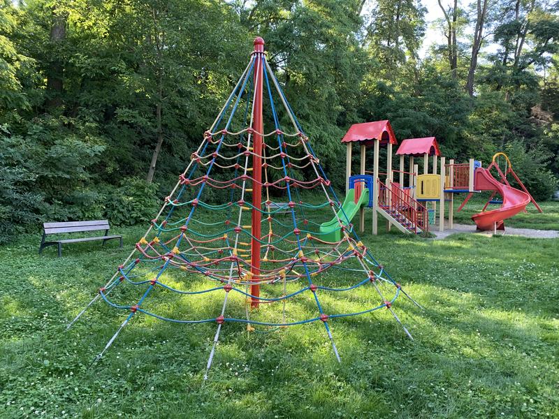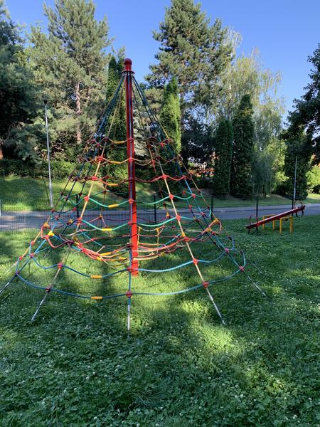 Malé návštěvníky potěší věž se dvěma skluzavkami, lanová pyramida, kolotoč, několik houpaček, zvířátko na pružině a tzv. hnízdo. Nechybí ani pískoviště, které je vybaveno rohovými sedáky a krycí plachtou. Dětské hřiště je oploceno.
