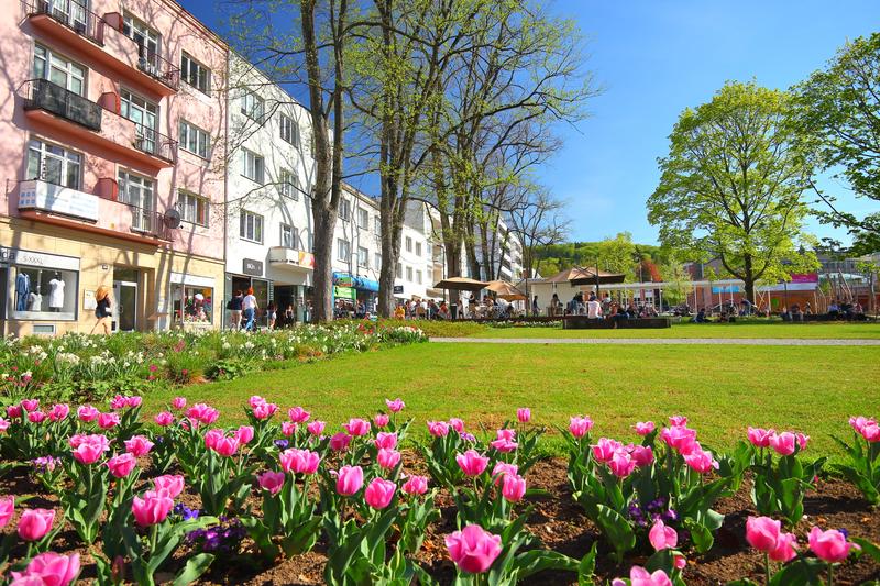 Živoucí srdce města, které je místem odpočinku, setkávání, randění, zábavy a sportu. Východní stranu parku lemuje ulice Školní, první zlínský bulvár, který slouží výhradně pro pěší a nabízí řadu obchůdků s občerstvením.