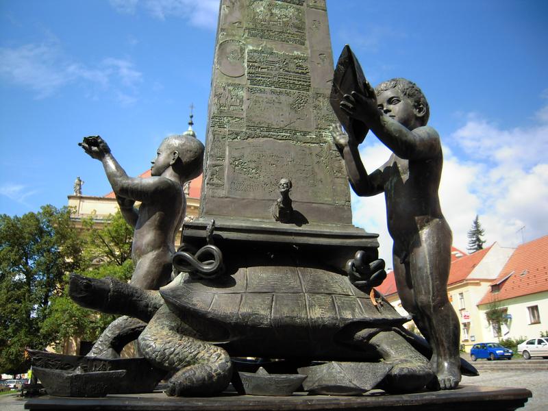 Bronzový obelisk Via Lucis (Cesta světla) věnoval městu u příležitosti oslav 400.výročí narození J.A.Komenského český sochař Ivan Theimer. Podstavec i obelisk jsou pokryty citáty, záznamy, figurální drobnokresbou a geografickými prvky. Je zde celý Orbis pictus a vše, co patří ke Komenskému. Želva podpírající sloup je symbol věčnosti, vyjadřuje moudrost, stálost a pokoru. Chlapci pouští papírové lodičky do světa a tím šíří poznání nejen Komenského.