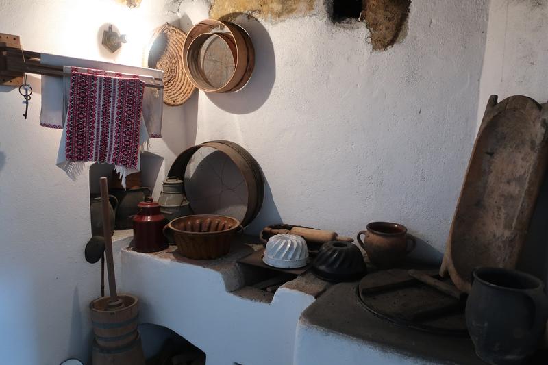Domek čp. 679 byl postaven v první třetině 19. století po dvou ničivých požárech, které v té době Kunovice postihly. Ke stavbě domů bylo původně používáno převážně dřevo, které bylo postupně nahrazováno hlínou - tlučenicí. Od konce 18. století do první světové války se výhradně stavělo z kotovic - nepálených cihel, které si lidé vyráběli sami. Jako krytina sloužil od poloviny 18. století došek, později nahrazovaný pálenou taškou - bobrovkou. Do domů se vcházelo síní - pitvorem s černou kuchyní, jejíž stav je v domku čp. 679 zachován. Na pravé straně domku je situována izba (hrubá nebo světnice) s kachlovými kamny s kopkou - pecí, kde spávaly děti a dalším tradičním vybavením - svatým kútem. Expozice zachycuje stav obydlí v Kunovicích do roku 1930. Na levé straně byla původně umístěna komora na uskladnění potravin. Byla postupně využívána jako výminek - místnost pro staré rodiče nebo jako klestí - pro novomanžele. Expozice zachycuje stav kolem roku 1950 - 60.