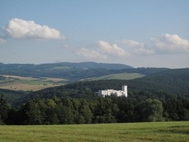 Zámek Nový Světlov, který byl postaven v roce 1480 jako hrad na skále nad soutokem Koménky a Olšavy, leží u silnice z Bojkovic do Komně.