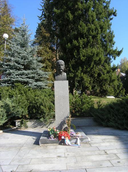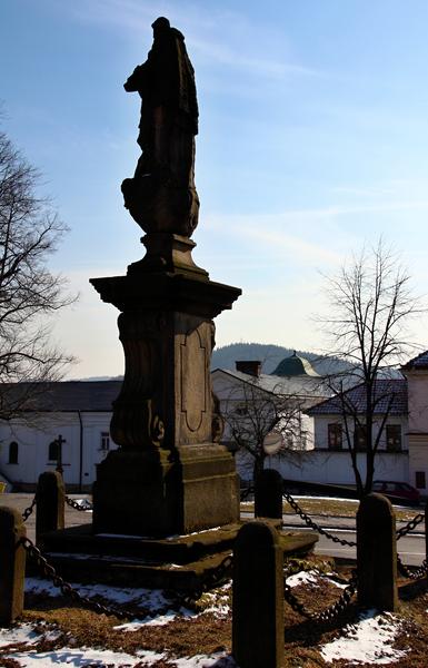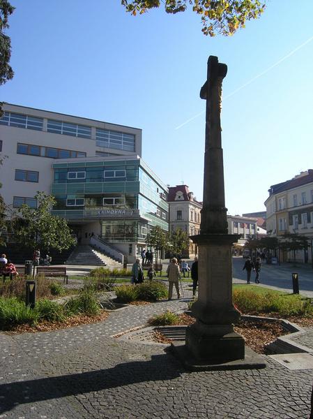 Kamenná plastika na Dolním náměstí - PLANETKA - meteorologický sloup.sochařsky pojatý objekt planetky, jejíž skutečná předloha krouží ve vesmíru pod číslem 27079.