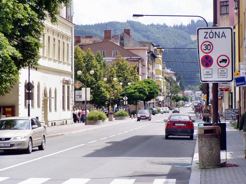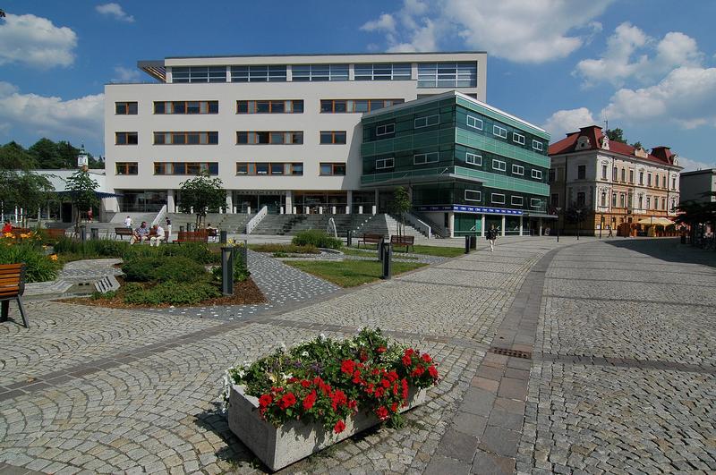 Náměstí Svobody - náměstí obklopují budovy hotelu Vsacan, bývalé Dolní školy , Masarykova gymnázia Vsetín a areál Panské zahrady.