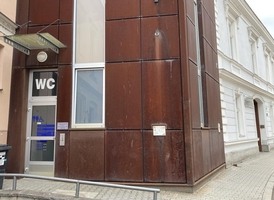 Veřejné WC s přebalovacím pultem a sprchami. Bezbariérové WC. Podpora WC karty.