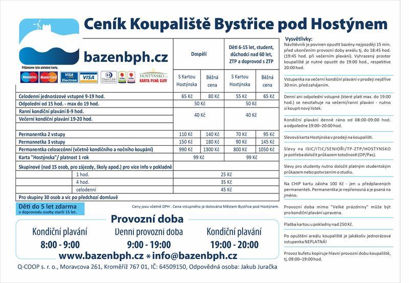 | Celodenní / S kartou Hostýnska | Odpolední od 15:00 hodin | Kondiční plavání | |