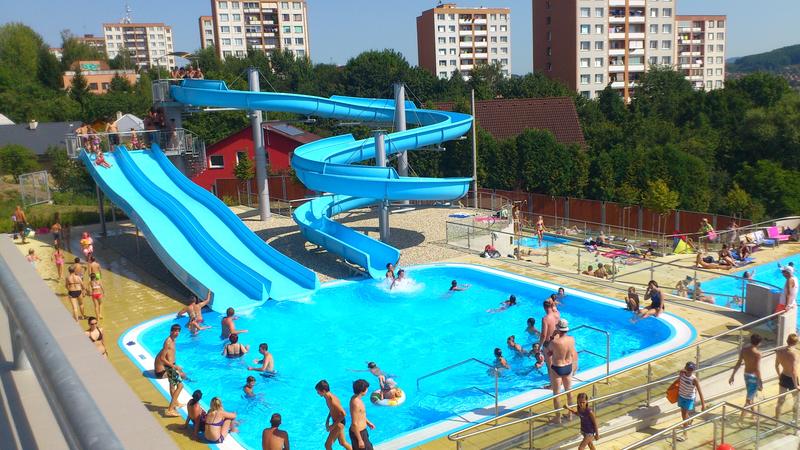 bazén venkovní, tobogán, skluzavka, rychlé občerstvení