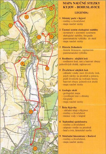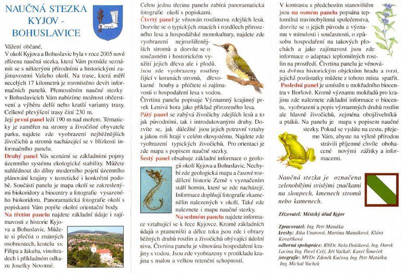 Naučná stezka byla zřízena v roce 2005 mezi Kyjovem a Bohuslavicemi, návštěvníky má seznámit s některými přírodními a historickými zajímavostmi okolí Kyjova a Bohuslavic. Na trase, která měří necelých 17 km je rozmístěno 9 informačních panelů Přemostění naučné stezky v Bohuslavicích nabízí možnost občerstvení a výběr delší nebo kratší varianty trasy, jejíž celkové převýšení činí 230 m.