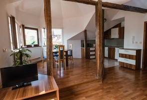 Zrekonstruovaný penzion s 9 mezonetovými apartmány s celkovou kapacitou 48 lůžek. Každý apartmán je vybaven: kuchyň (mikrovlnná trouba, chladnička, elektrický sporák, rychlovarná konvice), sociální zařízení, TV, jídelní stůl a židle. Další služby: bar, vinárna, dětské hřiště, dětský koutek, uzamčená garáž jako úschovna kol, gril zahradní, parkoviště pod kamerovým systémem, pračka, stylová folklorní hospoda, salónek, společenská místnost, sušička, venkovní terasa, WIFI, zahrada.