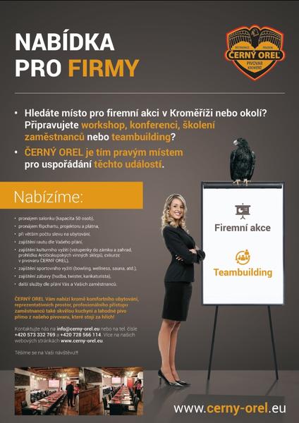 Hotel se nachází na Velkém náměstí v centru města v komplexu ČERNÝ OREL. Dostanete se do něj buď přes restauraci z náměstí, nebo vchodem z ulice Jánská 26, kde je i hotelová recepce. Součástí hotelu jsou originální pivní lázně s finskou saunou a aromaterapií na vodních postelích, restaurace, pivovar i čokoládovna. Kromě ubytování v hotelu je součástí pivovar ČERNÝ OREL, čokoládovna YESTERKA, restaurace, pivní lázně se saunou a masážemi, v přilehlém objektu se pak nachází také nová velká pivnice s názvem Pivobar něžný barbar a 200m přes náměstí u Arcibiskupského zámku máme Ztracený bar.