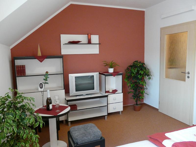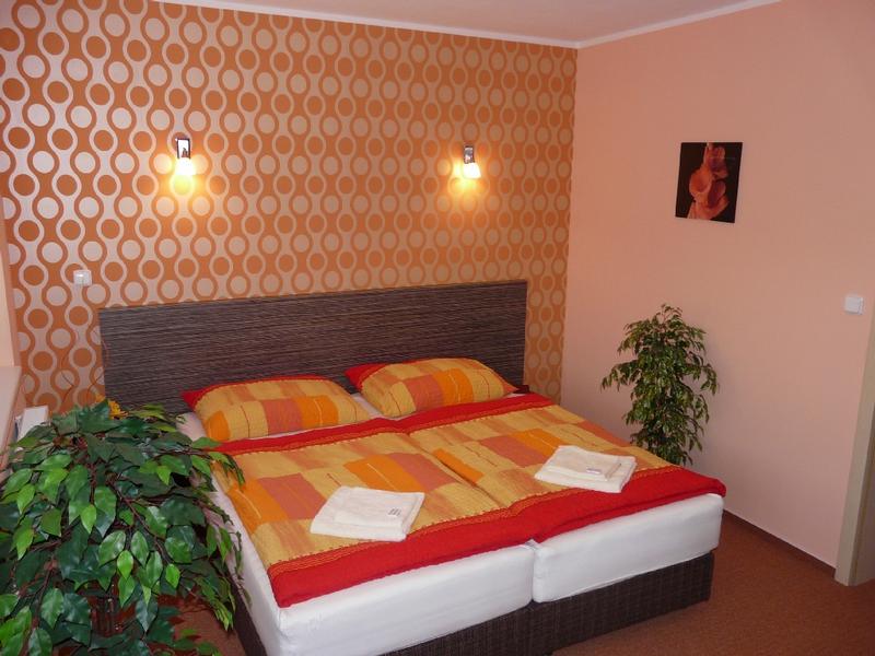Moderní nekuřácký čtyřhvězdičkový rodinný penzion v centru Starého Města - pět pokojů je dvoulůžkových, 2 jsou čtyřlůžkové s přistýlkami a dva jednolůžkové. Plně vybavené kuch. linky jsou k dispozici v apartmánech, v patře i ve vinném sklípku. K vaší pohodě jistě přispěje i příjemné zahradní posezení. Všechny pokoje mají prostorné sociální zařízení se sprchovým koutem, WC a umyvadlem. Na chodbičce každého pokoje je velká vestavěná skříň se zabudovanou lednicí a odkládacím panelem. Pokoje jsou vybaveny kvalitní televizí, rádiem, budíkem, DVD, CD přehrávačem a připojením k internetu (zdarma). Jižní pokoje jsou vybaveny klimatizací. Půjčovna i úschovna kol.