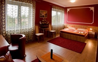 Pokoj je vybaven sociálním zařízením, vířivou rohovou vanou, wi-fi, 42-palcovou TV plazmou, DVD a nabídkou erotických kanálů. Jako dárek od nás obdržíte láhev šampaňského.