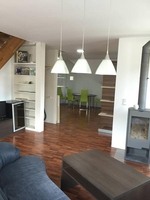 Sociální zařízení (WC, sprchový kout, umyvadlo, pračka), plně vybavená kuchyňská linka (trouba, sklokeramická deska, lednice, fritéza, mikrovlnka, varná konvice, kávovar, topinkovač, nádobí) spojená s prostornou jídelnou se stolem a lavicemi a obytnou společenskou místností s LCD TV a minibarem.
