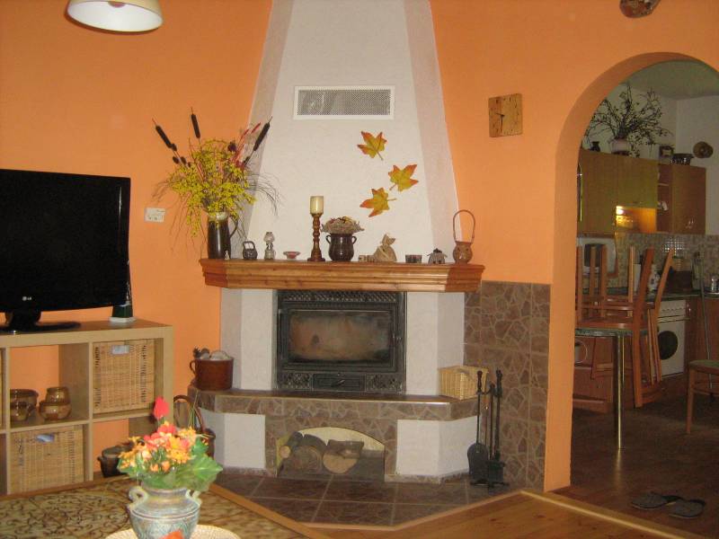 Vytápění: Vytápění elektrickými přímotopy, v AP1 možnost topení v krbu s krbovou vložkou, v AP2 možnost topení v krbových kamnech.