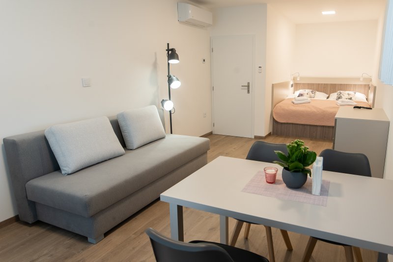 Apartmány jsou součástí rozsáhlého areálu Hospůdky na Haldě, ve kterém naleznete restauraci, venkovní zahrádky, dětské hřiště, výběhy pro zvířátka a rybník. 4 apartmány s možností ubytovat 4 hosty a 1 apartmán s možností ubytovat až 6 hostů. Všechny pokoje jsou vybaveny kuchyňskou linkou s varnou deskou, lednicí a mikrovlnou troubou. Součástí obývacího pokoje je manželská postel, rozkládací pohovka, jídelní stůl a LCD televizor.