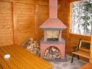 kuchyň je kompletně vybavená, venkovní posezení s krbem a altánkem, v zimním období možnost zakoupení permanentek k lyžování