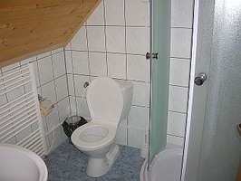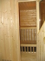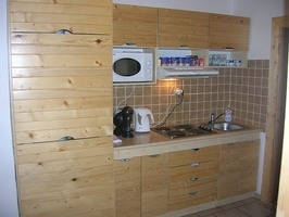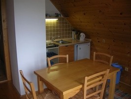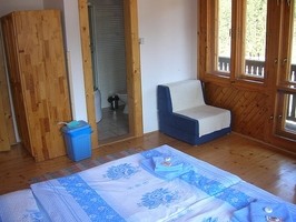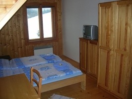 V přízemí je společenská místnost s krbem, TV a dětský koutek s hračkami. Je zde i sauna a místnost pro kola, lyže nebo kočárky.